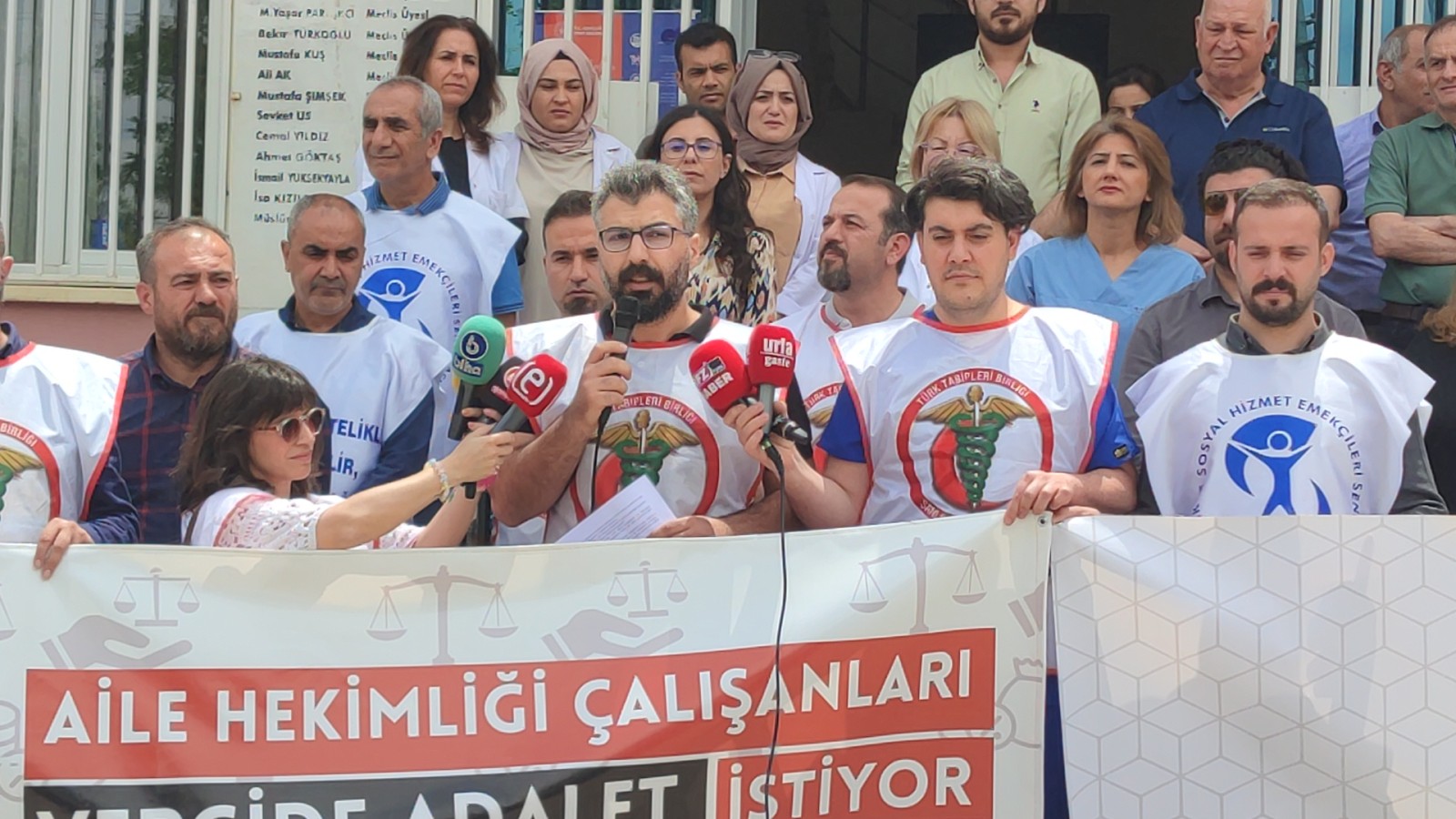 Merkezi önünde yapılan basın açıklamasına çok sayıda hekim katıldı
