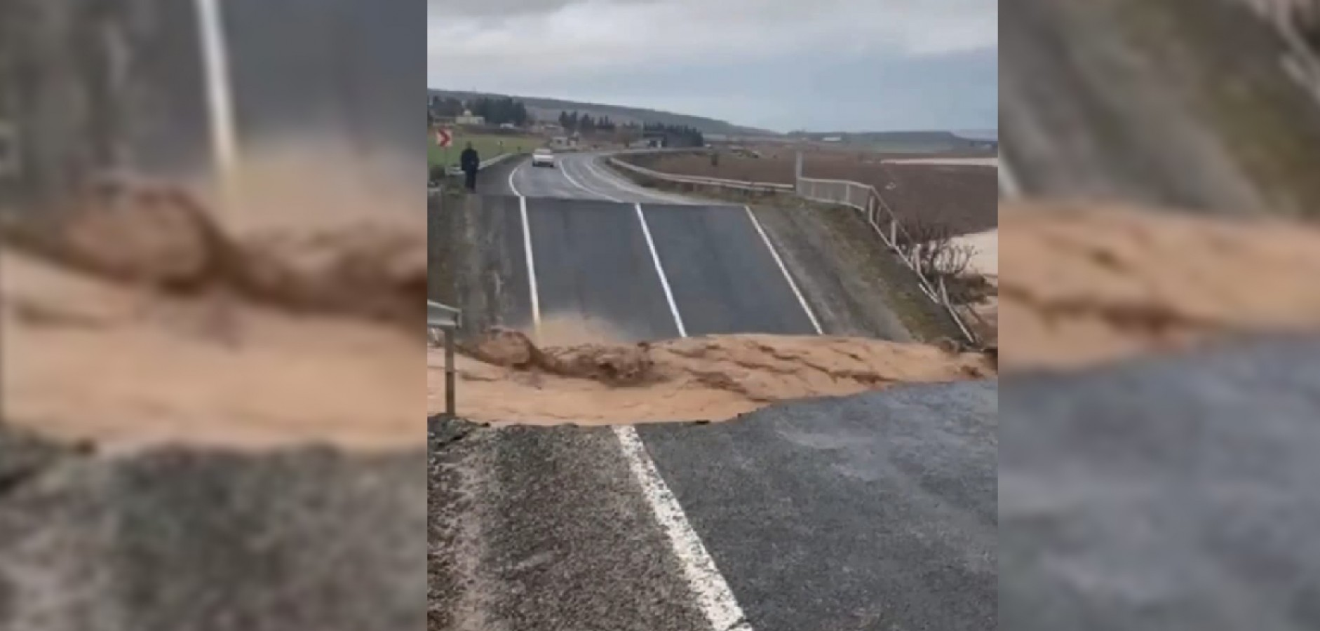Şanlıurfa'da yaşanan sel felaketi dolayısıyla Hilvan - Bozova yolu Ördek Köyü noktasında sular köprüyü ortadan ikiye ayırdı. O anlar saniye saniye görüntülendi....