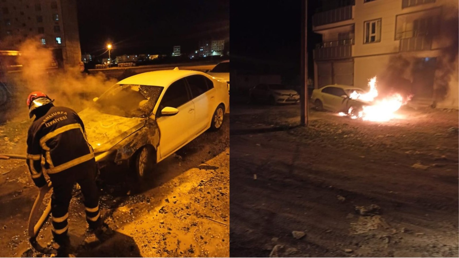 Olay yerine gelen itfaiye ekipleri, aracı kısa sürede