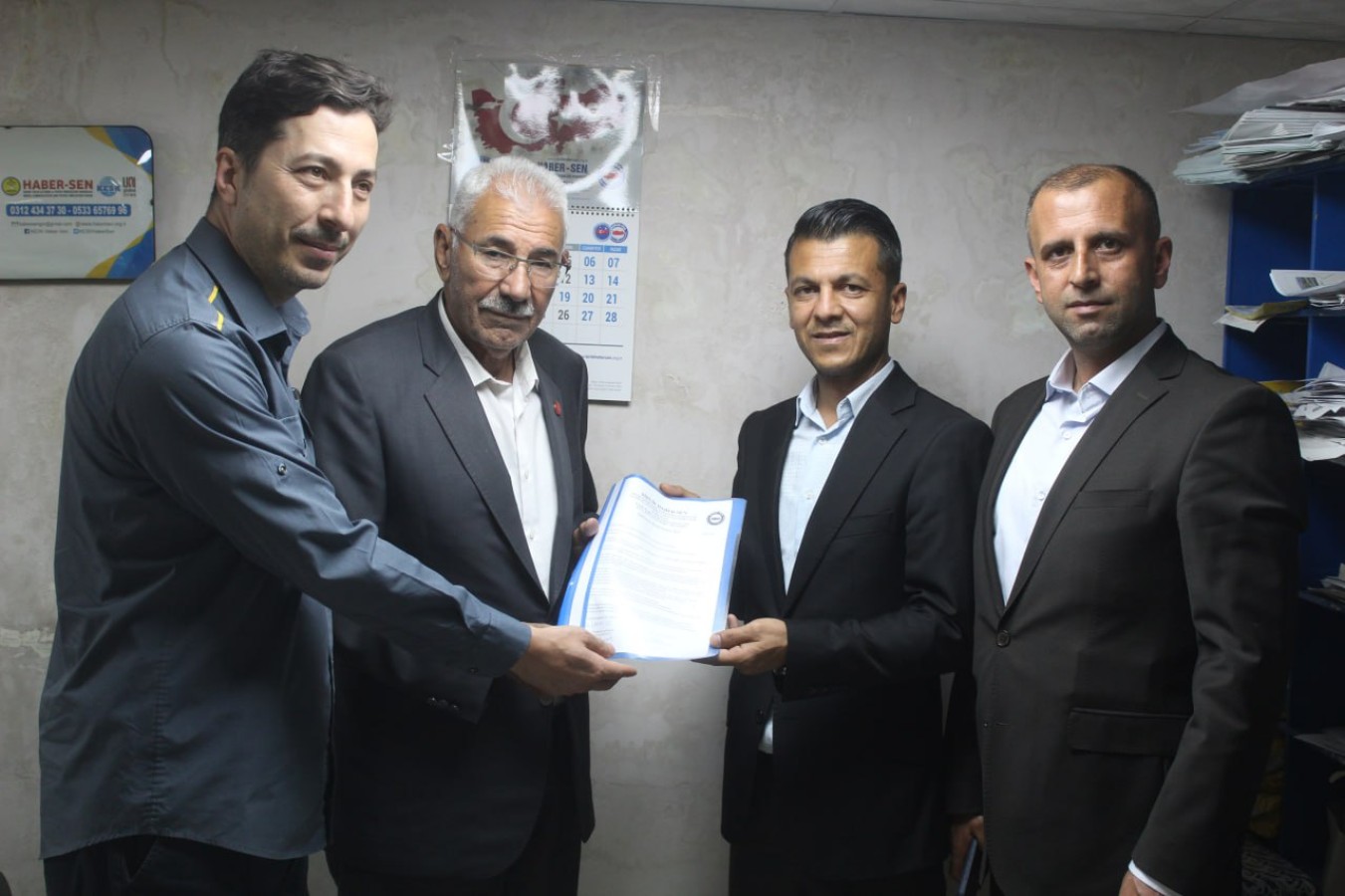 Birlik Haber-Sen Şanlıurfa Şube Başkanı Hacı Murat Açıkgöz ile görüşen İsmail Yavuz, sorunların ve çözüm önerilerinin olduğu dosyayı teslim etti.