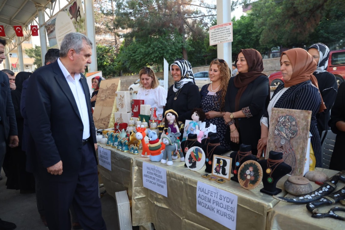 olan ürünlerin sergilendiği alanı Halfeti Belediye Başkanı Şeref Albayrak ile