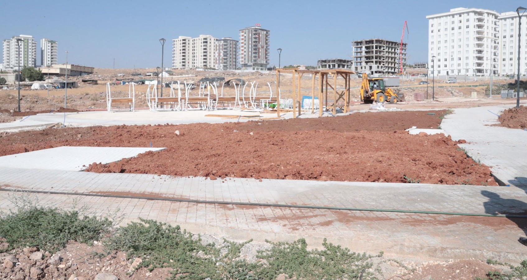 Şanlıurfa’da yaz mevsiminde vatandaşların serin ve gölgelik bir alanda zaman geçirmelerini sağlamak amacıyla kentte park çalışmasına hız veren Şanlıurfa Büyükşehir Belediyesi Mehmetçik Mahallesinde park yapımını sürdürüyor.