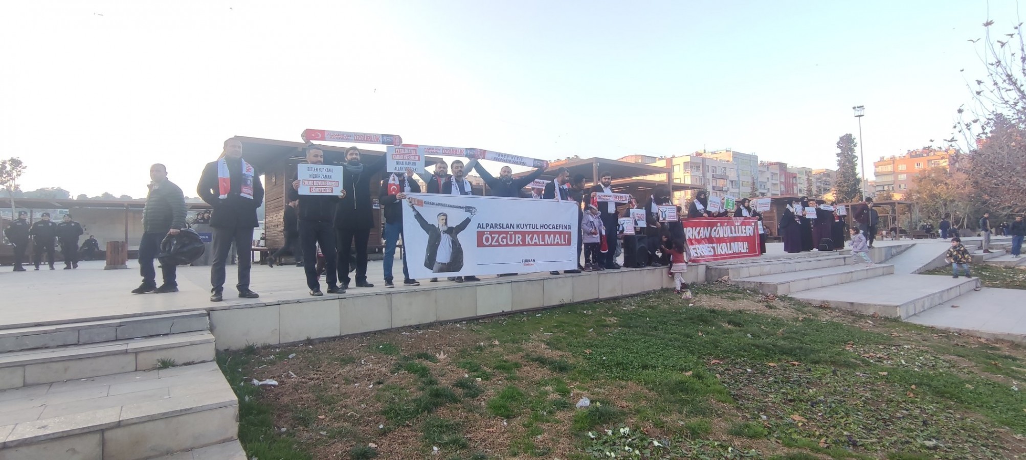 Eski Furkan Eğitim ve Hizmet Vakfı Yöneticisi Alparslan Kuytul'un tutukluluk halinin devamına karar verilmesi üzerine vakfın Urfa'daki üyeleri eylem yaptı....