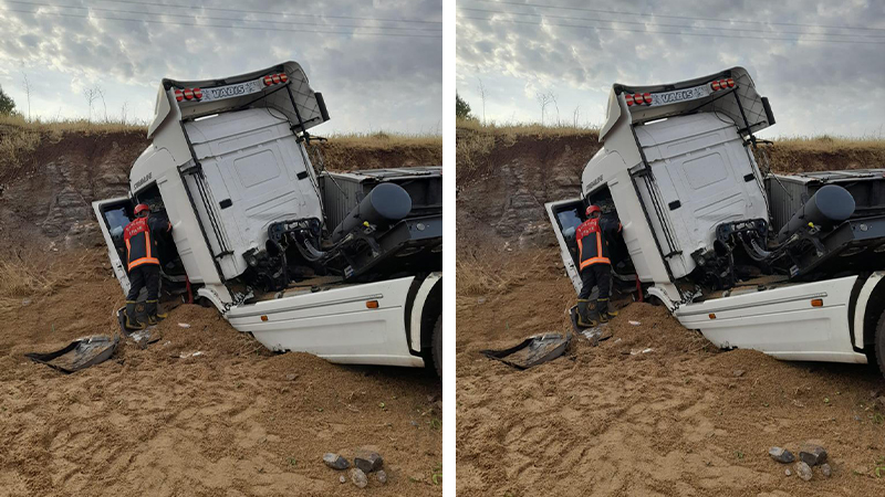 Şanlıurfa-Hilvan kara yolunda sürücüsünün direksiyon hakimiyetini kaybettiği tır, kontrolden çıkarak devrildi. Yaşanan kazada araçta sıkışan sürücü itfaiye ekiplerince kurtarıldı....